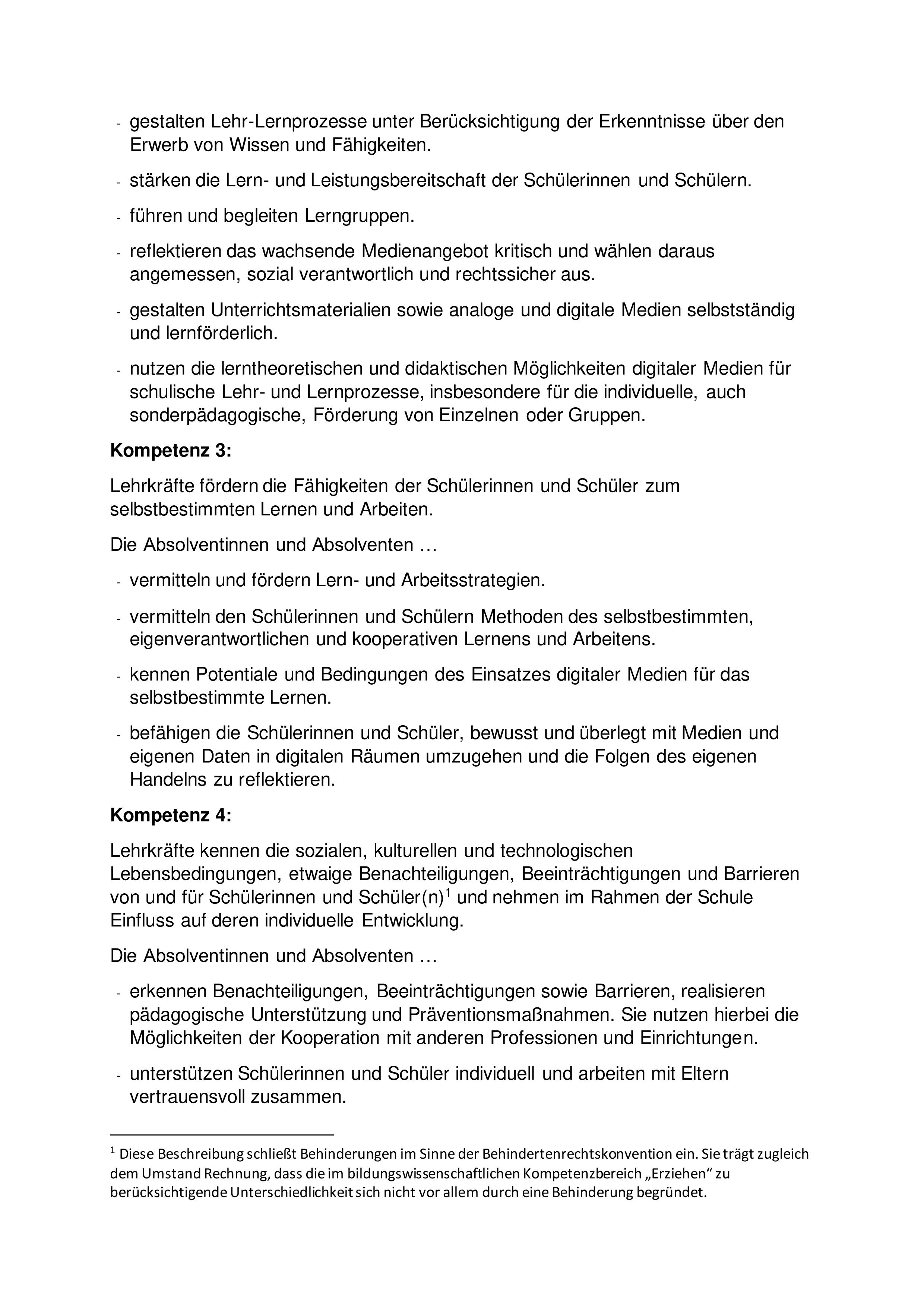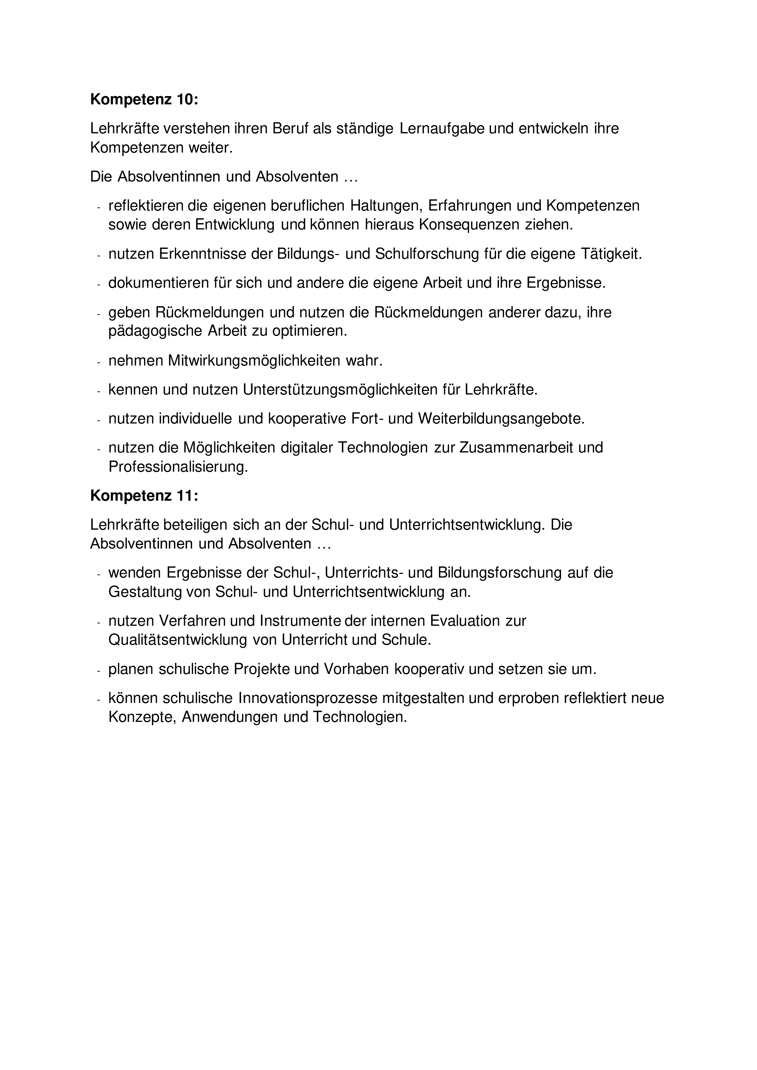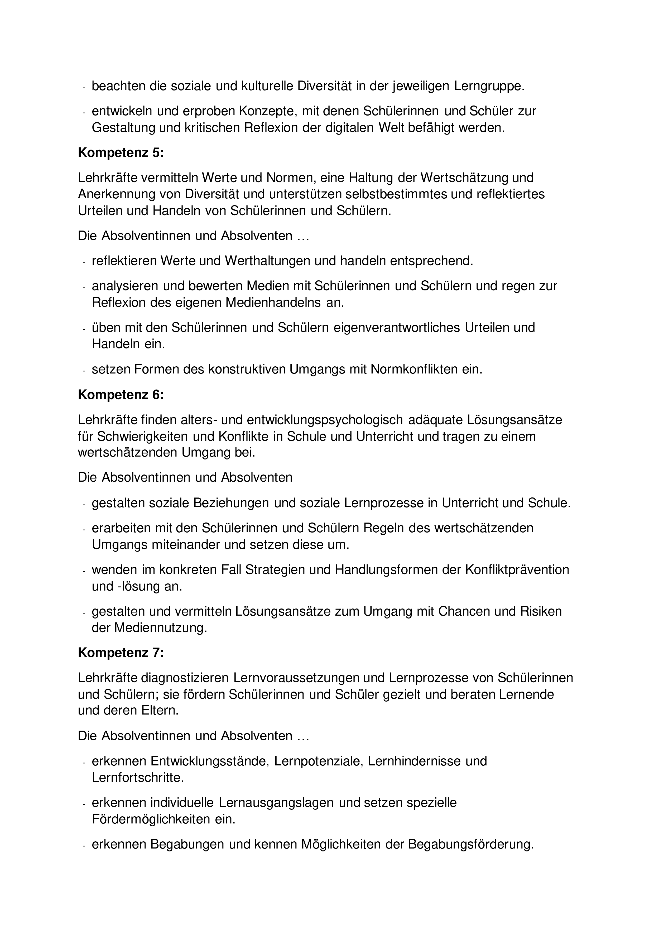 Der Vorbereitungsdienst bereitet Lehramtsanwärterinnen und Lehramtsanwärter als eigenverantwortlich Lernende auf die spätere berufliche Unterrichts- und Erziehungstätigkeit an Schulen vor. Auf der Grundlage der Kompetenzen und Standards für den Vorbereitungsdienst nach der Anlage 1 zu dieser Verordnung und eines von dem für Schulen zuständigen Ministerium zu erlassenden Kerncurriculums zielt die Ausbildung auf den Kompetenzerwerb in allen Handlungsfeldern des Berufs einer Lehrkraft. Die Ausbildung ist an den grundlegenden Kompetenzen für Unterricht, Erziehung, Beurteilung, Diagnostik, Beratung, Kooperation und einer datengestützten Schul- und Unterrichtsentwicklung sowie an den wissenschaftlichen und künstlerischen Anforderungen der Fächer auszurichten. Die Befähigung zur individuellen Förderung von Schülerinnen und Schülern, der Umgang mit Heterogenität unter Beachtung der Erfordernisse der Inklusion, die Stärkung von Demokratiekompetenz, die Bildung für nachhaltige Entwicklung sowie die Bildung in der digitalisierten Welt sind zu berücksichtigen. Den genannten Zielen dient die wissenschaftlich fundierte schulpraktische Ausbildung, die das Zentrum für schulpraktische Lehrkräfteausbildung und die Schule gemeinsam verantworten.