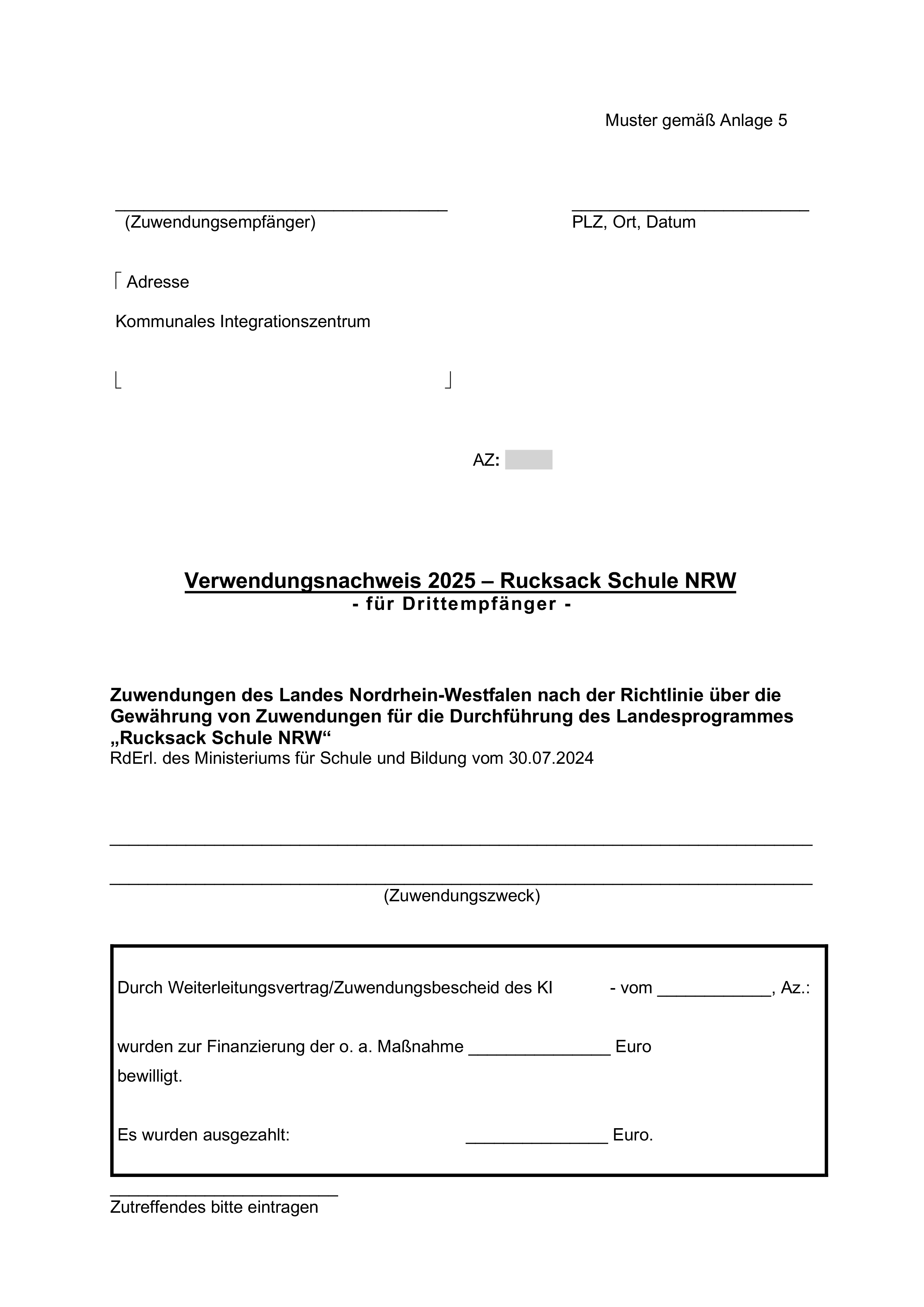 Runderlass „Richtlinie über die Gewährung von Zuwendungen für die Durchführung des Landesprogramms „Rucksack Schule NRW““ des Ministeriums für Schule und Bildung vom 30. Juli 2024 (ABI. NRW. 08/24).