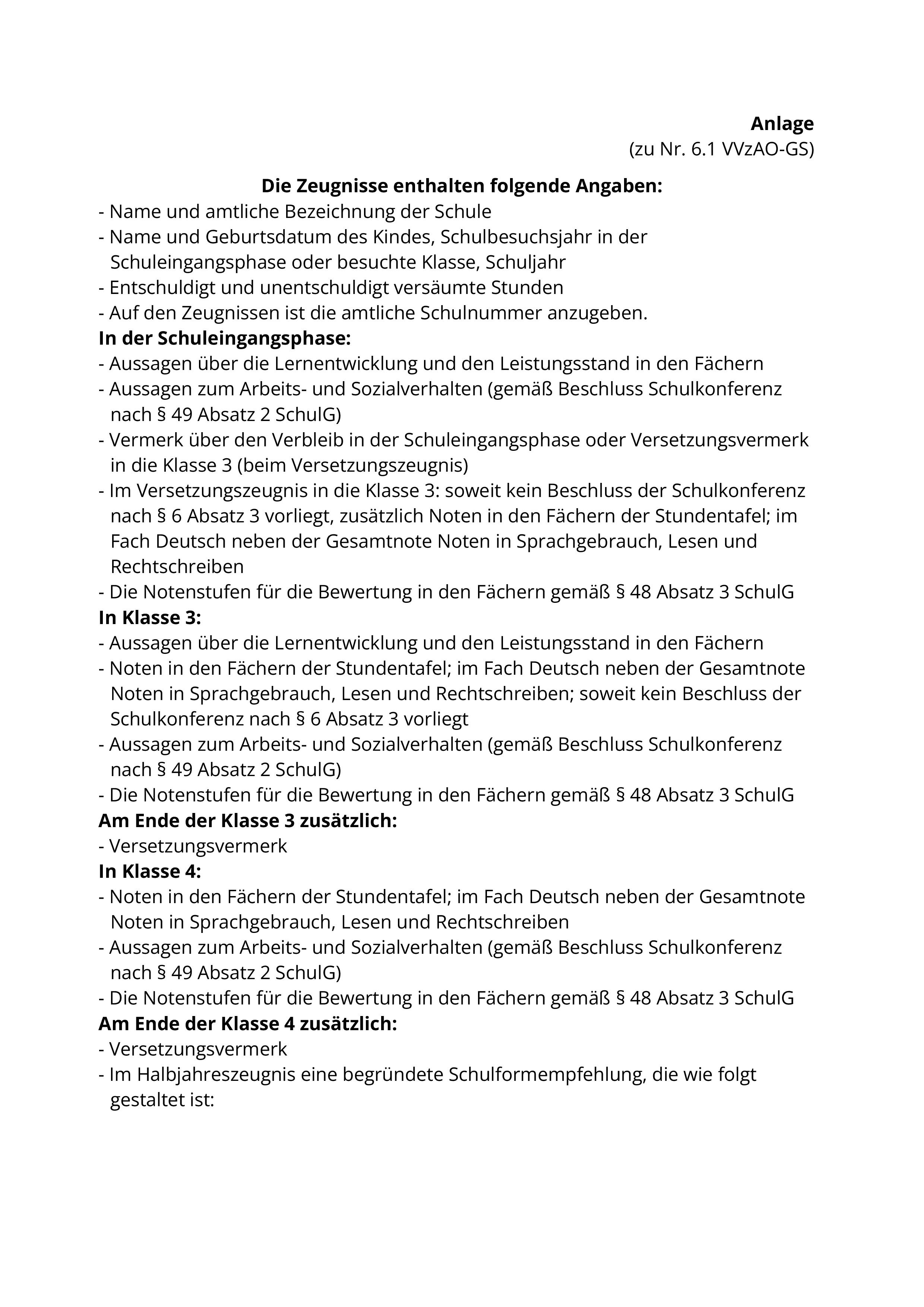 Im Bezugserlass, der zuletzt durch Runderlass vom 31. März 2025 (ABl. NRW. 04/25) geändert worden ist, wird die Anlage zu Nr. 6.1 der VVzAO-GS wie folgt geändert: