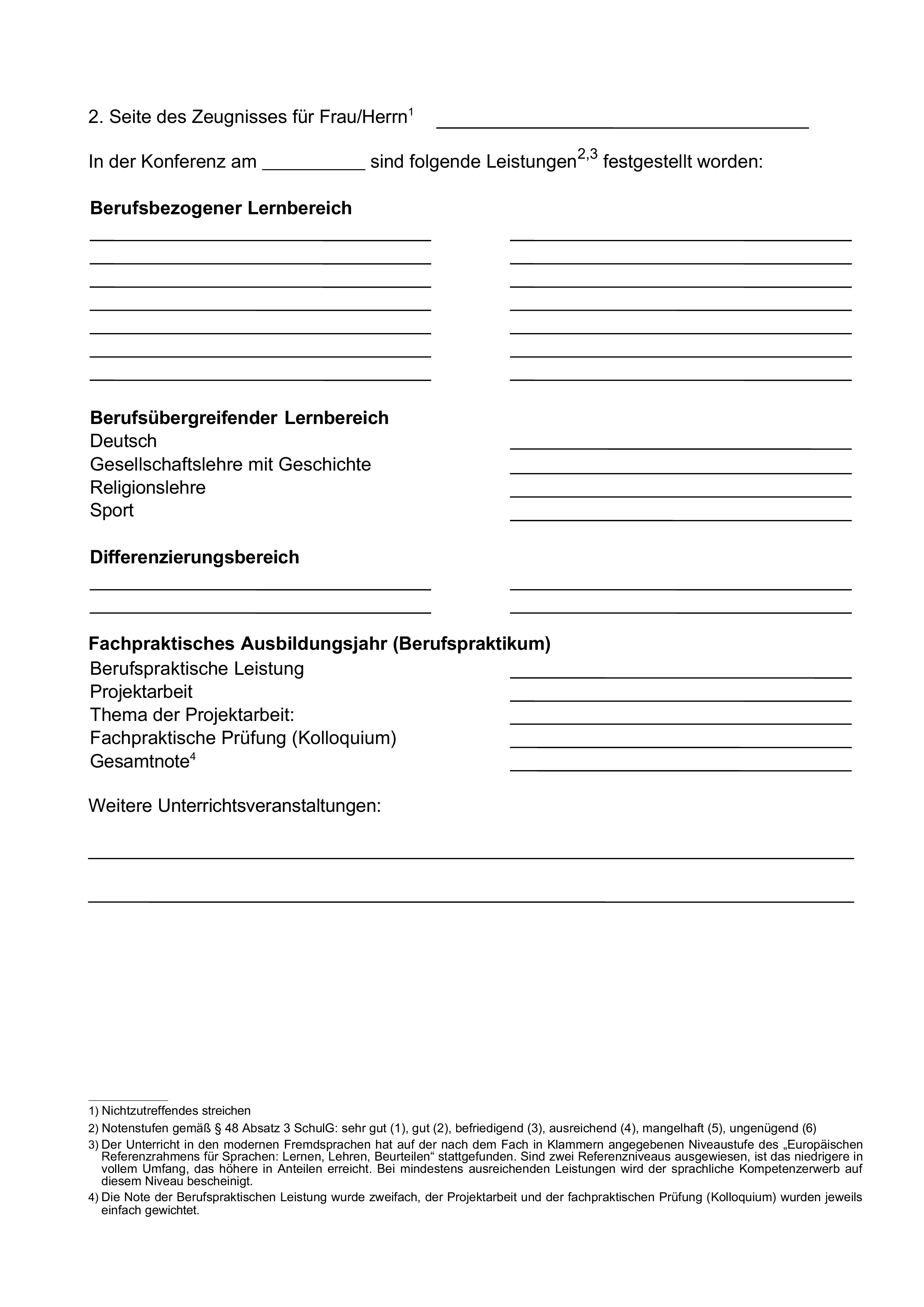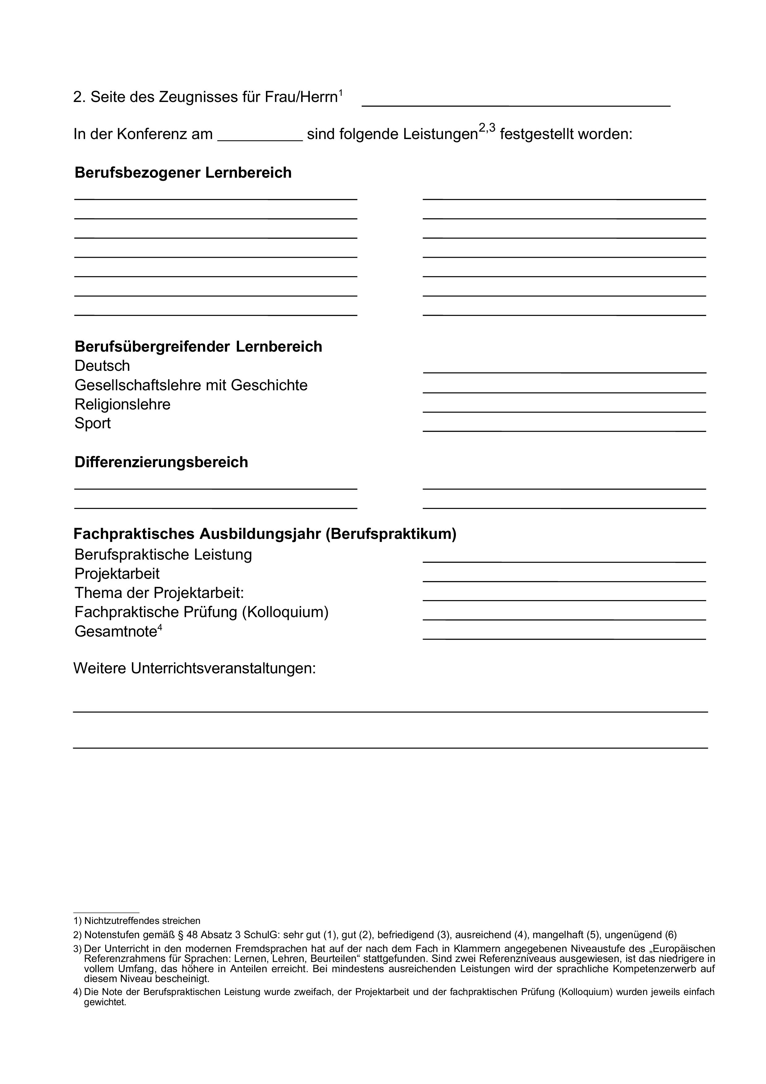 In dem Abschlusszeugnis der Fachrichtung Möbelhandel gemäß Anlage E 5 ist der Hinweis auf die Rahmenvereinbarung über Fachschulen zu streichen.